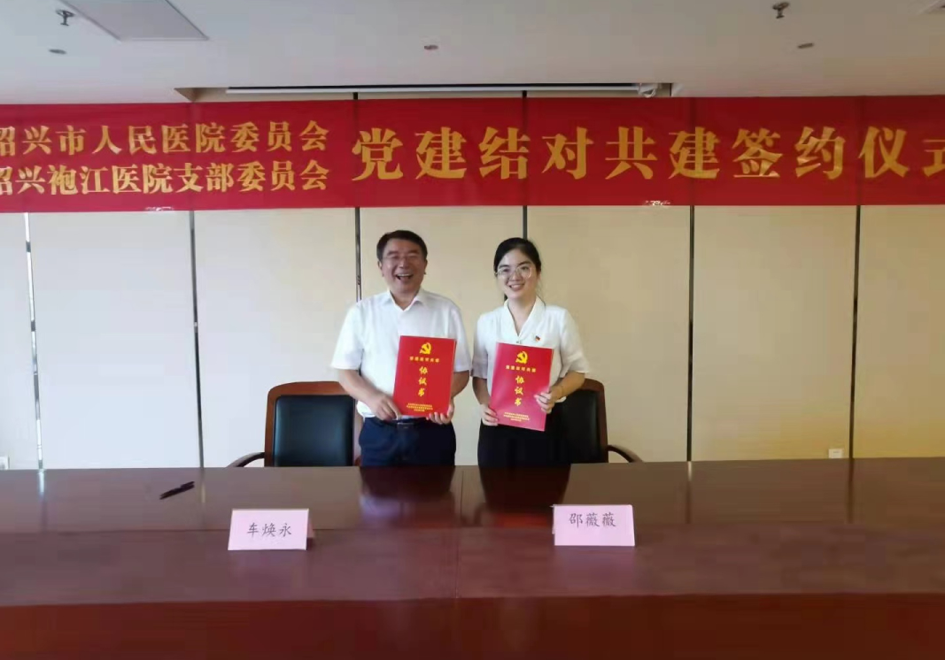 時值中國共產(chǎn)黨百年華誕,10月14日下午,紹興市人民醫(yī)院與紹興袍江醫(yī)院舉行黨建結(jié)對共建簽約儀式,旨在通過建立公立醫(yī)院、民營醫(yī)院黨建“公民手牽手”結(jié)對幫扶機制,提高基層黨組織的創(chuàng)造力、凝聚力、戰(zhàn)斗力。紹興市人民醫(yī)院黨委副書記、副院長車煥永同志,紹興市人民醫(yī)院黨委委員、黨建辦主任陳士敏同志,紹興市人民醫(yī)院血管疝外科主任、臨床十一支部書記唐黎明同志,紹興市人民醫(yī)院呼吸科主任醫(yī)師、院感處副處長、臨床一支部副書記狄楓同志,紹興市人民醫(yī)院醫(yī)技三支部書記、臨床檢驗中心副主任張麗紅同志,董事2021-10-16