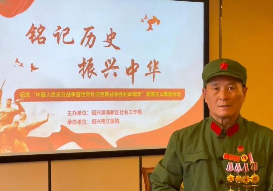 近日,由紹興濱海新區(qū)社會工作局主辦、紹興袍江醫(yī)院承辦的“紀念中國人民抗日戰(zhàn)爭暨世界反法西斯戰(zhàn)爭勝利80周年”愛國主義教育活動在醫(yī)院會議中心舉行。本次活動特邀參戰(zhàn)老兵言國良同志作主題分享?;顒蝇F(xiàn)場68歲的言國良老同志精神矍鑠,聲音洪亮地講述了戰(zhàn)爭年代的艱苦卓絕。他深情回顧了全國人民同仇敵愾、共赴國難的歷史歲月,強調(diào)中國人民抗日戰(zhàn)爭是世界反法西斯戰(zhàn)爭的重要組成部分,為世界反法西斯事業(yè)作出了巨大貢獻。他表示,中國人民始終堅定不移地維護歷史真相,堅持正確的歷史觀,這是對先烈最好的告慰2025-09-15