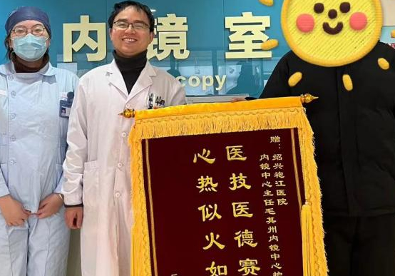 恰逢春暖花開,萬象更新的美好時節(jié),我院內鏡中心出現了溫馨的一幕?;颊咧彀⒁碳凹覍偎蛠硪幻鎸懹小搬t(yī)技醫(yī)德賽華佗,熱心似火如家人”的錦旗,向毛其州醫(yī)生以及內鏡中心全體醫(yī)護人員對她的精準診療和真情關懷表示感謝。這背后是肯定、是榮譽,也是沉甸甸的“醫(yī)患情誼”。據了解,患者朱阿姨長期受到便秘的困擾,并伴有腹脹。近期,朱阿姨腹脹加重,自訴大便形狀改變并伴有血便,內鏡中心毛其州醫(yī)生為朱阿姨進行腸鏡檢查。因朱阿姨腹部曾做過多次手術,她擔心檢查時會有困難。檢查室內,毛其州醫(yī)生和護士一邊和朱阿姨2024-04-08