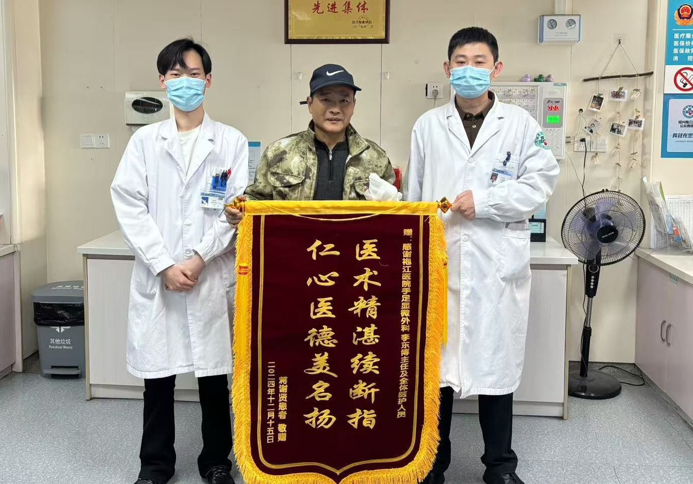 一面錦旗的認(rèn)可,一份不變的責(zé)任,錦旗上的寥寥數(shù)語,看似簡單卻承載著患者對(duì)醫(yī)護(hù)人員的認(rèn)可肯定蘊(yùn)含著醫(yī)患之間真摯的、濃濃的情誼感謝有你,醫(yī)路呵護(hù)百姓健康!“手”護(hù)希望,斷指重生“不知道該怎么感謝你們,這面錦旗請(qǐng)一定收下……”近日,紹興袍江醫(yī)院手足顯微外科收到患者蔣先生贈(zèng)送的錦旗。這面錦旗,傳遞的不僅是患者及家屬對(duì)醫(yī)護(hù)團(tuán)隊(duì)的感激之情,更是對(duì)醫(yī)院醫(yī)療服務(wù)的充分認(rèn)可和最大褒獎(jiǎng)。據(jù)了解,患者蔣先生在操作切割機(jī)時(shí),不慎傷到了手指,情況十分嚴(yán)重,其左中指已然完全離斷,左食指也出現(xiàn)了部分離斷的2024-12-23